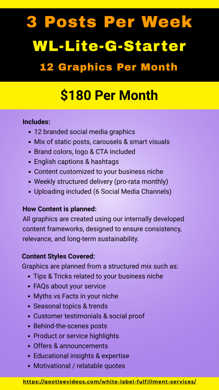 - WL-Lite-G-Starter – 3 Posts Per Week (12 Graphics/month) – $180 per month