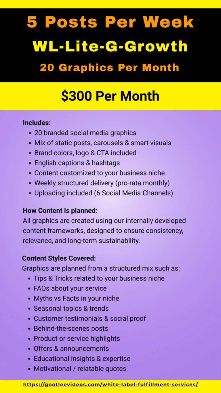 - WL-Lite-G-Growth – 5 Posts Per Week (20 Graphics/month) – $300 per month