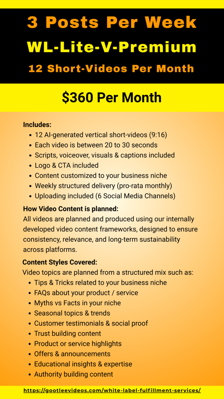 - WL-Lite-V-Premium – 3 Posts Per Week (12 Videos/month) – $360 per month