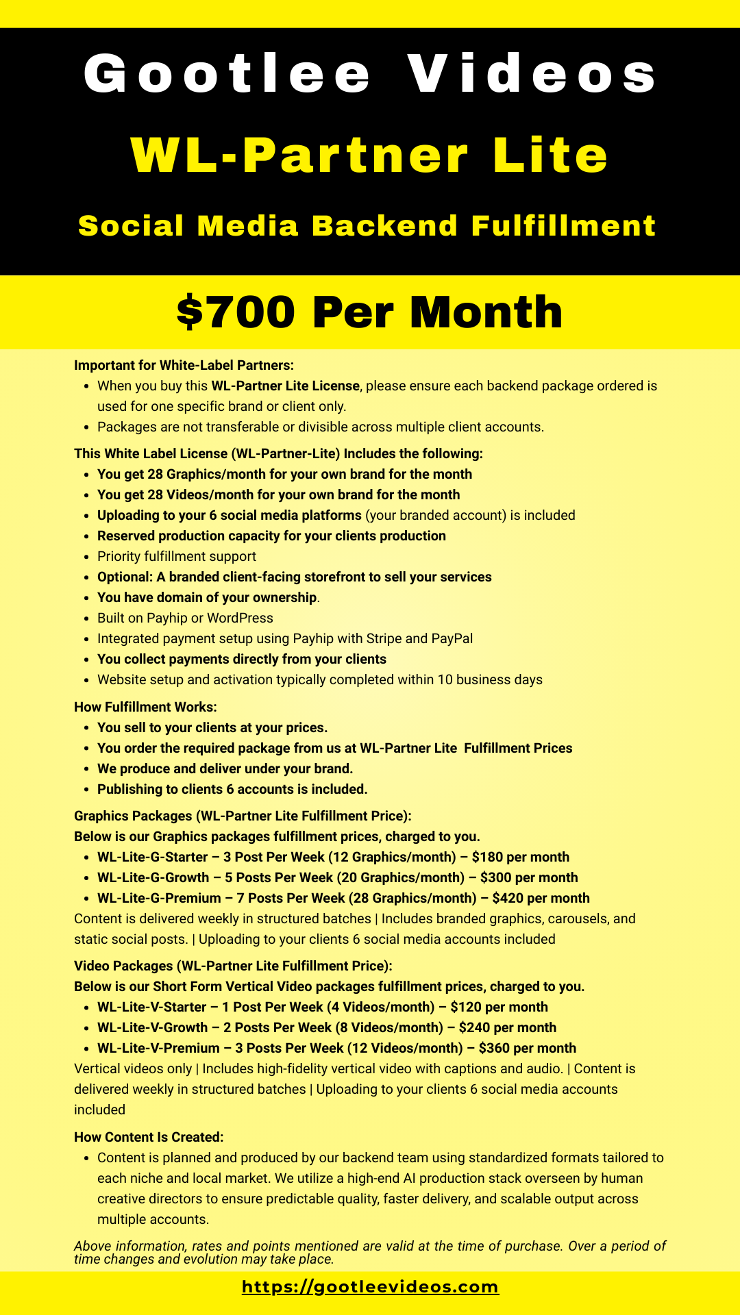 Below is our “WL Partner Lite” – Short Form Vertical Video packages fulfillment price for your clients.